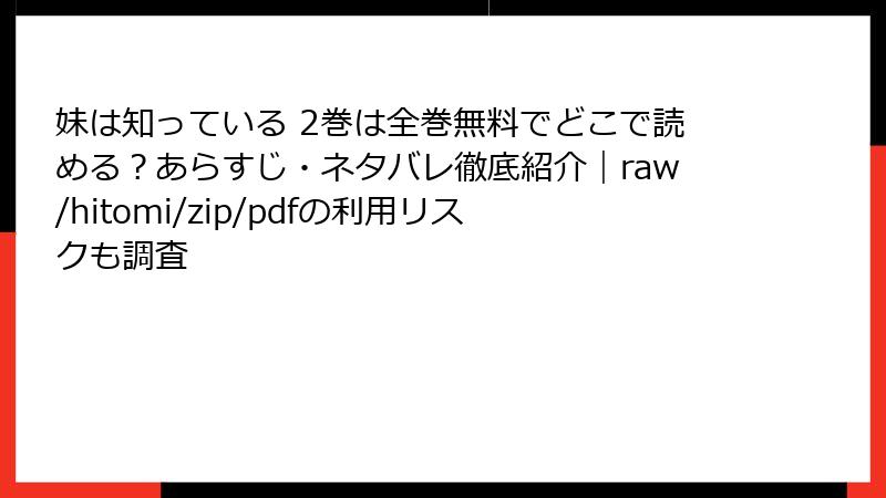 『妹は知っている』を海賊版サイトで読むリスクを徹底解説