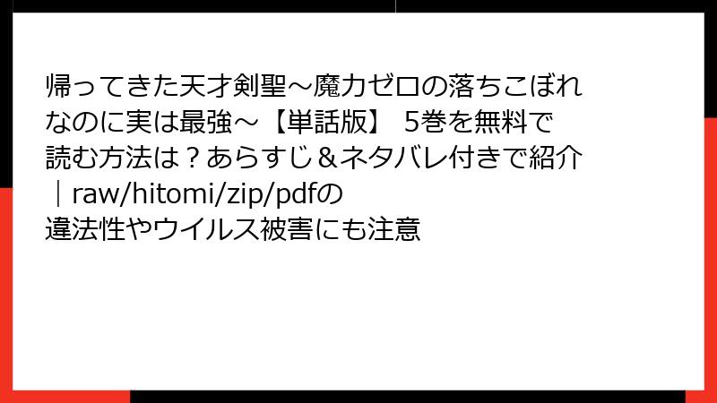 帰ってきた天才剣聖~魔力ゼロの落ちこぼれなのに実は最強~【単話版】 5巻を無料で読む方法は?あらすじ&ネタバレ付きで紹介|raw/hitomi/zip/pdfの違法性やウイルス被害にも注意