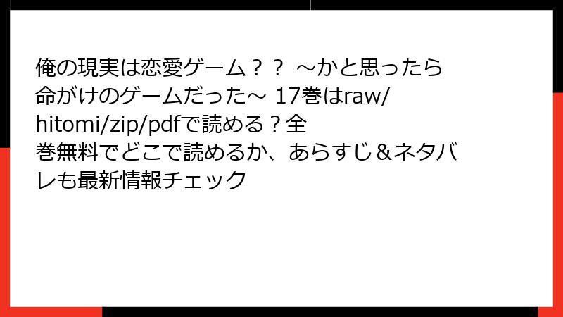 こんにちは、漫画ファンの皆さん! スクウェア・エニックスのガンガンコミックスUP!で連載中の『俺の現実は恋愛ゲーム?? ~かと思ったら命がけのゲームだった~』(原作:わるいおとこ、漫画:彭傑&奈栩、キャラクター原案:夕薙)の17巻が、2023年6月12日に発売されました。この巻は「自覚」編のクライマックスとして、ファンから熱い注目を集めています。恋愛ゲームの皮をかぶったクライムサスペンスの魅力と、命がけの選択が織りなす緊張感は、読者を虜に。今回は、ネット上のレビュー、Xでの口コミ、評判を徹底的に集め、17巻の魅力と評価をブログ形式で詳しくお届けします。ネタバレは最小限に、読み応え満点でいきますよ!