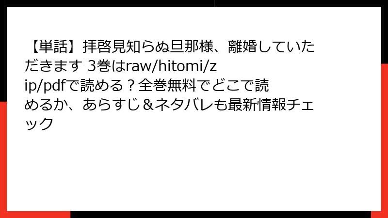 こんにちは、漫画ファンの皆さん! 今日は、ちょっとデリケートな話題ですが、『拝啓見知らぬ旦那様、離婚していただきます』のような人気作品を、raw、hitomi、zip、pdf、漫画バンクなどの海賊版サイトで読むことのリスクについて深掘りします。一見、無料で手軽に楽しめそうですが、実際には法的・セキュリティ・倫理的な落とし穴が満載。ブログ記事として、読み応えのある形で解説していきます。未読の皆さんはここで正規ルートをおすすめしますが、知っておくことでトラブルを避けられるはず! それでは、さっそく本題へ。