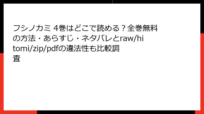 実際、2023年に公開されたあるレポートでは、海賊版サイトの約60%がマルウェアを拡散する可能性があると指摘されています。『フシノカミ』4巻を安全に楽しむためにも、怪しいサイトでのダウンロードは避けましょう。たとえば、zipファイルを解凍しただけでPCがクラッシュした、といった実例もSNSで散見されます。