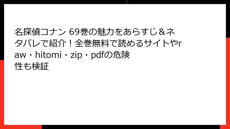 名探偵コナン 69巻の魅力をあらすじ&ネタバレで紹介!全巻無料で読めるサイトやraw・hitomi・zip・pdfの危険性も検証