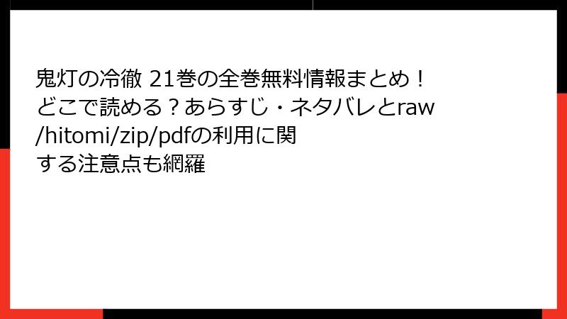 『鬼灯の冷徹』の電子書籍は、挙げられたサービスのうちピッコマとLINEマンガ以外で全巻読めます。特にebookjapanやコミックシーモアの割引を活用すれば、お財布に優しい! 鬼灯の冷徹なツッコミに笑いながら、地獄の深みを味わってください。未読の方は、試し読みから一巻目へGO! 皆さんの推しサービスはどこ? コメントで教えてね。次回はアニメ再放送の感想かな? またお会いしましょう!