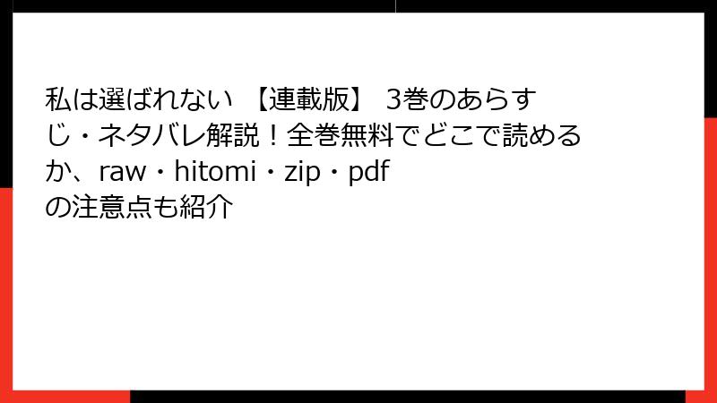 私は選ばれない 【連載版】 3巻のあらすじ・ネタバレ解説!全巻無料でどこで読めるか、raw・hitomi・zip・pdfの注意点も紹介