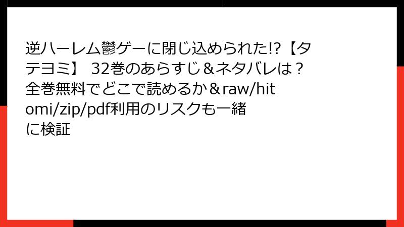 『逆ハーレム鬱ゲーに閉じ込められた!?【タテヨミ】』32巻のレビュー・口コミ・評判を徹底解説! ファンの熱い声と魅力