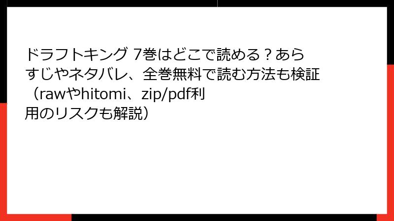 ドラフトキング 7巻はどこで読める?あらすじやネタバレ、全巻無料で読む方法も検証(rawやhitomi、zip/pdf利用のリスクも解説)