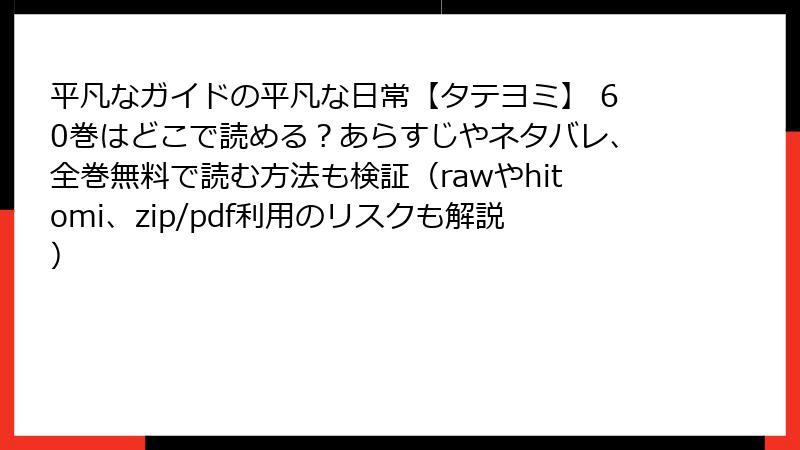 「平凡なガイドの平凡な日常」のような人気作品は、出版社が特に監視を強化している場合も多く、利用者が特定されるリスクは無視できません。好きな作品を応援するつもりが、逆に作者や業界に損害を与えてしまうのは、ファンとして避けたいですよね。