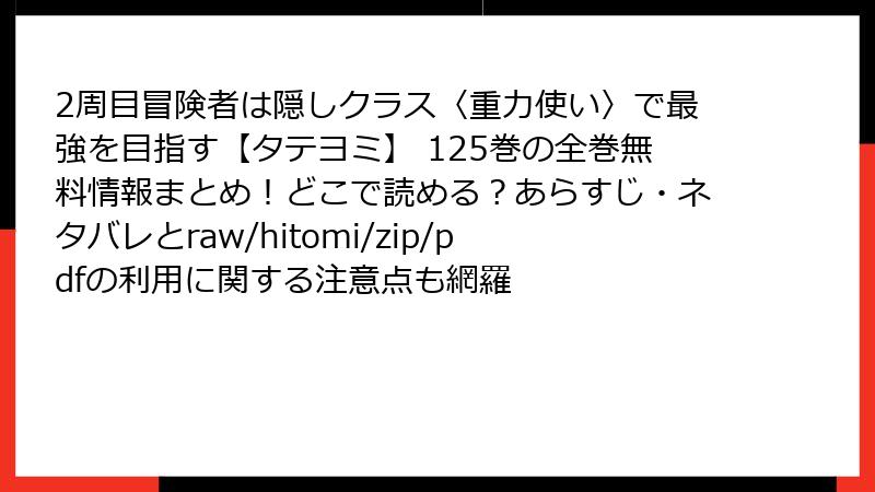 2周目冒険者は隠しクラス〈重力使い〉で最強を目指す【タテヨミ】125巻のレビュー・口コミ・評判を徹底解説