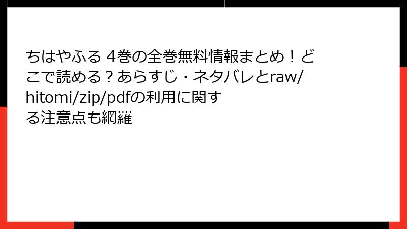 こんにちは、漫画ファンの皆さん! 今日は、末次由紀先生の名作『ちはやふる』を、raw、hitomi、zip、pdf、漫画バンクなどの海賊版サイトで読もうとするリスクについて、徹底的に掘り下げてお話しします。かるたの熱い試合と青春のドラマに心奪われるこの作品、無料で全巻アクセスできるのは魅力的ですよね。でも、2025年現在、これらのサイトは法的制裁の網を逃れるためにドメインを頻繁に変えながら存続していますが、利用者には想像以上の危険が待ち受けています。ウイルス感染、個人情報漏洩、罰金の恐怖…一時の快楽が長期的な後悔を生むんです。この記事では、複数の視点からリスクを詳しく解説。読み終わったら、正規ルートを選ぶきっかけになるはず! 安全第一で、千早たちの情熱を合法的に楽しんでいきましょう。