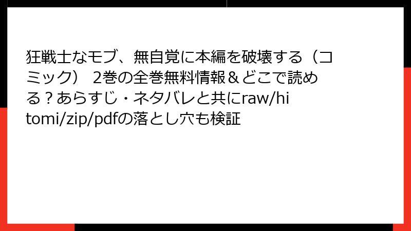 結論として、raw/hitomi/zip/pdf/漫画バンクなどの海賊版サイトは、短期的な快楽の代わりに法的・セキュリティ・倫理の三重苦を強います。2025年の今、取り締まり強化で「後悔の連続」が増えています。『狂戦士なモブ、無自覚に本編を破壊する』のような傑作を、心置きなく楽しむために──今日から正規ルートへシフトを! あなたの安全な読書ライフを応援しています。コメントで「私はこうして回避してるよ」とシェアをお待ちしてます♪