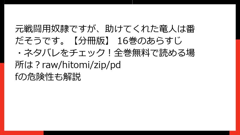 1. 『元戦闘用奴隷ですが、助けてくれた竜人は番だそうです。【分冊版】16巻』の魅力に迫る! 詳細あらすじと読みどころ満載レビュー