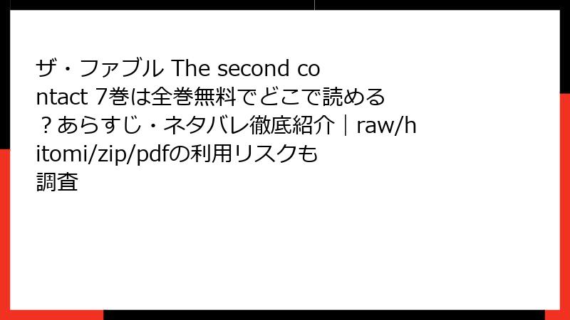『ザ・ファブル The second contact』7巻を海賊版サイトで読むことは、法的な罰則、セキュリティの危険、業界への悪影響、品質の低下など、多くのリスクを伴います。一時の無料の誘惑に負けず、作者や作品を尊重する選択をすることが、ファンとしての責任です。正規の購入なら、安全かつ高品質な体験が得られ、さらには南勝久先生や『ザ・ファブル』の未来を支えることに直結します。あなたも、ルーマーのような裏の誘惑に打ち勝ち、アキラのような正しい道を選びましょう! 漫画を愛する心で、正規版を手にとって、最高の読書体験を楽しみませんか?