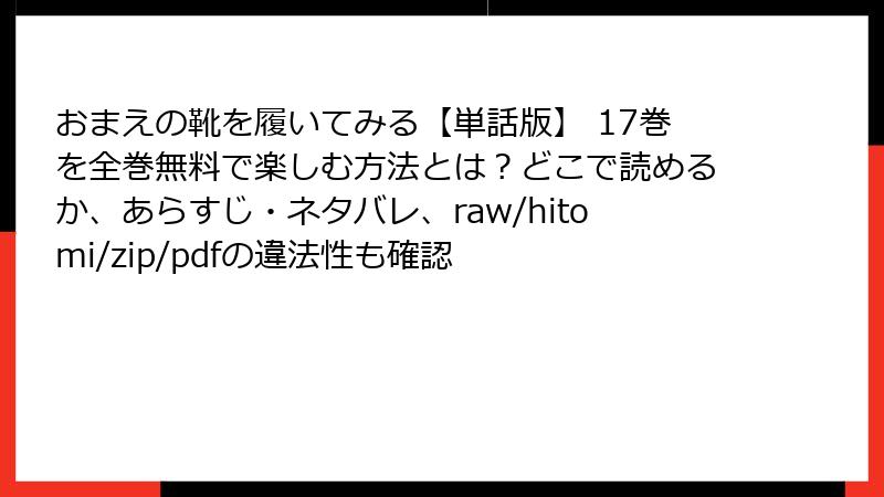 漫画好きの皆さん、こんにちは! 人気のBL作品『おまえの靴を履いてみる【単話版】』のような心揺さぶるストーリーを、無料でサクッと読みたいと思ったことはありませんか? しかし、raw、hitomi、zip、pdf、漫画バンクなどの海賊版サイトは、一見魅力的に見えますが、実は法的な罠からセキュリティの地雷原まで、数えきれないほどのリスクが潜んでいます。2025年現在、これらのサイトはドメインを変えながら生き残っていますが、政府の取り締まり強化(CODAのブロッキング推進)で、利用者の被害事例が急増中です。