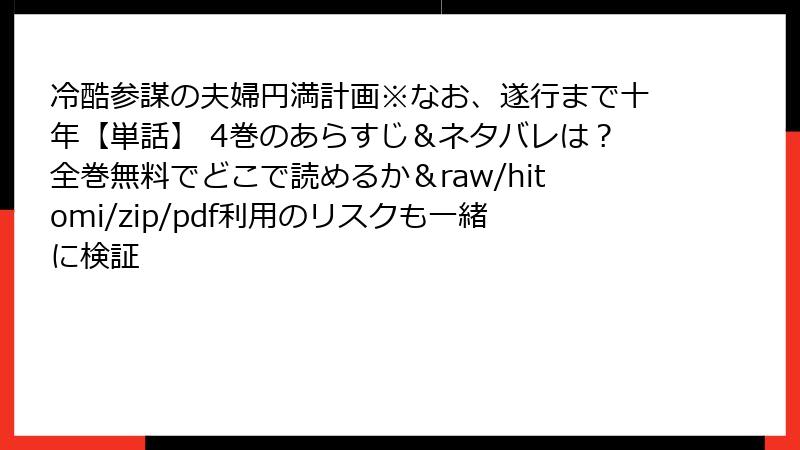 『冷酷参謀の夫婦円満計画※なお、遂行まで十年【単話】 4巻』のレビュー・口コミ・評判を徹底分析!