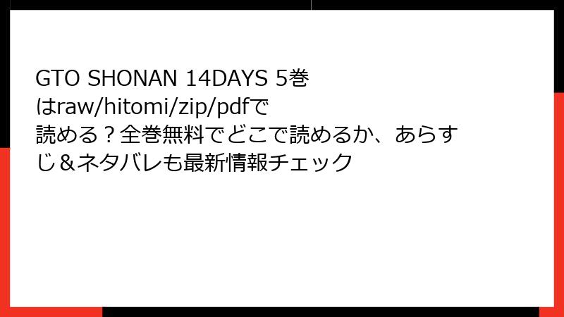 raw/hitomi/zip/pdf/漫画バンクなどの海賊版サイトは、法的・セキュリティ・金銭的な地雷原です。『GTO SHONAN 14DAYS』5巻の堂島の成長譚のように、私たちも賢い選択で前進しましょう。正規サービスへのシフトが、クリエイターを支え、業界を豊かにします。無料の誘惑に負けず、安全第一でマンガライフを楽しんでください!