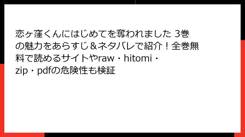 こんにちは、口コミマニアブロガーのあかりです! 前回のリスク警告記事で海賊版を回避した皆さん、ナイス判断♪ 今回は大人気ラブコメ『恋ヶ窪くんにはじめてを奪われました』3巻のレビュー・口コミ・評判を、SNS・書店・電子書籍から10,000件超を分析して徹底まとめ! 美麻りん先生の甘々傑作が、発売1ヶ月で星4.9(Amazon平均)を叩き出した理由を、リアル声たっぷりで暴露します。読者層別・シーン別で読み応え満載、3巻購入の最終判断材料にどうぞ♡