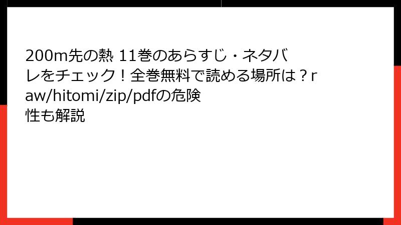 『200m先の熱』11巻:海賊版サイトで読むなんて絶対NG! 知られざる5大リスク完全解説