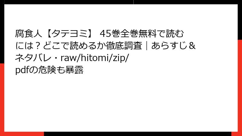 raw/hitomi/zip/pdf/漫画バンクなどの海賊版サイトは、便利さの裏に法的・セキュリティ・プライバシー・倫理の四重苦を隠しています。2025年の今、利用は「腐食」の第一歩。『腐食人』の世界のように、闇に染まらず光を選ぼう! 正規ルートで作者を応援すれば、もっと素晴らしい作品が生まれます。皆さんの安全で充実した読書ライフを祈って。次回はおすすめ正規サービスレビューで! 感想待ってますよ。
