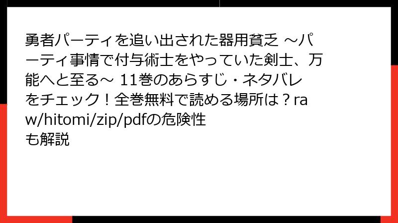こんにちは、ファンタジー漫画好きのブロガーです! 今日は、ますます熱を帯びてくる人気作『勇者パーティを追い出された器用貧乏 ~パーティ事情で付与術士をやっていた剣士、万能へと至る~』の11巻について、詳しくあらすじを掘り下げてお届けします。このシリーズは、追放された主人公が「器用貧乏」から真の万能者へ成長していく爽快ストーリーで、毎巻の展開が待ちきれませんよね。11巻は特に、愛弟子たちの危機と主人公の活躍が光る一冊。ネタバレを最小限に抑えつつ、読み応えのあるレビュー形式でまとめました。さっそく本編の流れを追いながら、魅力ポイントを解説していきましょう!