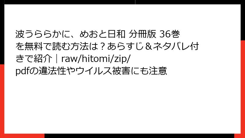 こんにちは、漫画愛好家ブロガーです。『波うららかに、めおと日和』のような心温まる昭和ロマン作品を、つい無料で読みたくなる気持ち、わかります。でも、raw、hitomi、漫画バンク、zip、pdfなどの海賊版サイトを使うと、想像以上の代償を払うことになるんです。今日は、そのリスクを「法律」「セキュリティ」「倫理」「作品への影響」の4軸で徹底解説。読み終えたら、正規ルートで読む大切さがきっと実感できるはずです。