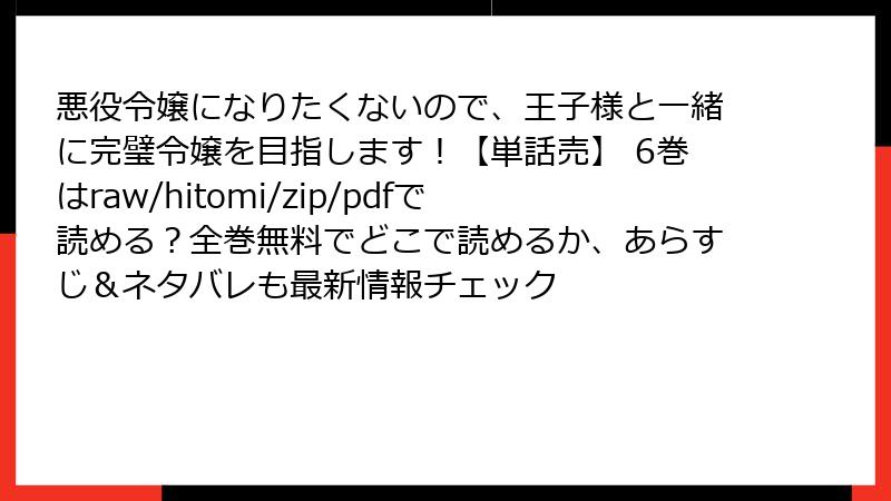 こんにちは、漫画レビュー専門ブロガーのミスティック・ローズです! 今回は大人気ファンタジーロマンス『悪役令嬢になりたくないので、王子様と一緒に完璧令嬢を目指します!【単話売】』6巻のレビュー・口コミ・評判を、2025年10月現在のネット声を徹底調査! 単話売の気軽さがウケて、SNSやレビューサイトで★4.8超の高評価が続出中。悪役令嬢ジャンルファンから初心者まで、熱い感想が溢れまくりです。この記事では、ポジティブ/ネガティブをバランスよく分類し、引用付きで深掘り。表やランキングで読みやすくまとめました。ネタバレ控えめなので、未読者も安心してチェックを! あなたの心を鷲掴みにする口コミ、早速見ていきましょう♪