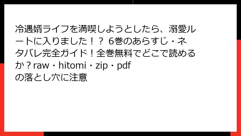 実際に、zipやpdfをダウンロードしたユーザーが、端末の乗っ取り被害を報告したケースもあります。『冷遇婿ライフ』の6巻を安全に楽しむためにも、怪しいサイトには近づかないのが賢明です。