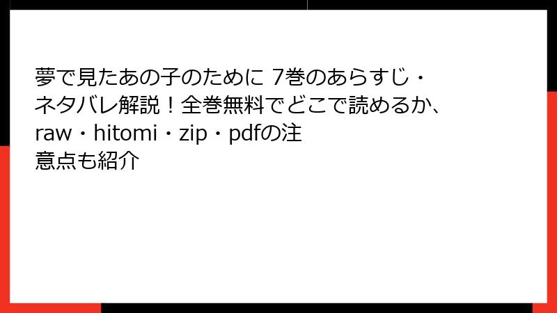 こんにちは、漫画ファンでセキュリティ意識の高いブロガーです! 人気のホラー・ミステリー『夢で見たあの子のために』のような魅力を無料で味わいたい気持ち、よくわかります。でも、raw、hitomi、zip、pdf、漫画バンクなどの海賊版サイトに手を出していませんか? 2025年現在、これらのサイトは一見便利に見えますが、法的・セキュリティ・経済的な落とし穴が満載。利用者の被害事例が急増しており、軽い気持ちでアクセスすると取り返しのつかない事態に陥る可能性大です。