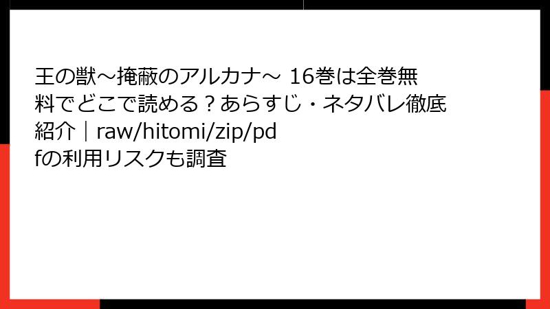 『王の獣~掩蔽のアルカナ~』をraw/hitomi/zip/pdf/漫画バンクで読むとどうなる? 海賊版の“本当の代償”を徹底解剖