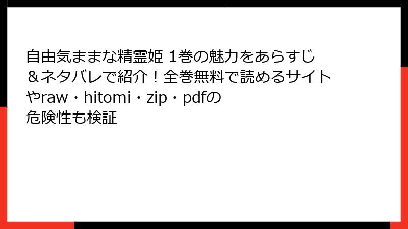こんにちは、漫画好きの安全ネットユーザーです! 人気のファンタジー作品『自由気ままな精霊姫』のような魅力的な漫画を、無料で手軽に読みたいと思い、海賊版サイト(raw、hitomi、zip、pdf、漫画バンクなど)に手を出したことはありませんか? 確かに、最新巻を即アクセスできるのは魅力的。でも、2025年現在、これらのサイトは法的・セキュリティ・倫理的な地雷原。利用者の被害事例が急増中で、軽い気持ちで訪れると取り返しのつかない事態に陥る可能性大です。このブログ記事では、そんな海賊版サイトのリスクを、複数の視点から詳しく掘り下げます。読み応えを重視して、事例や比較表も交えつつ解説。あなたのデバイスと心を守るための必読情報をお届けします! 注意:この記事は情報提供を目的としており、違法行為を推奨するものではありません。正規ルートで漫画を楽しもうぜ!