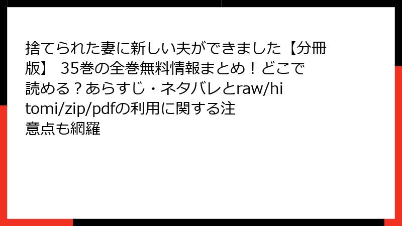 「捨てられた妻に新しい夫ができました【分冊版】 35巻」レビュー・口コミ・評判徹底分析! 読者のリアルな声