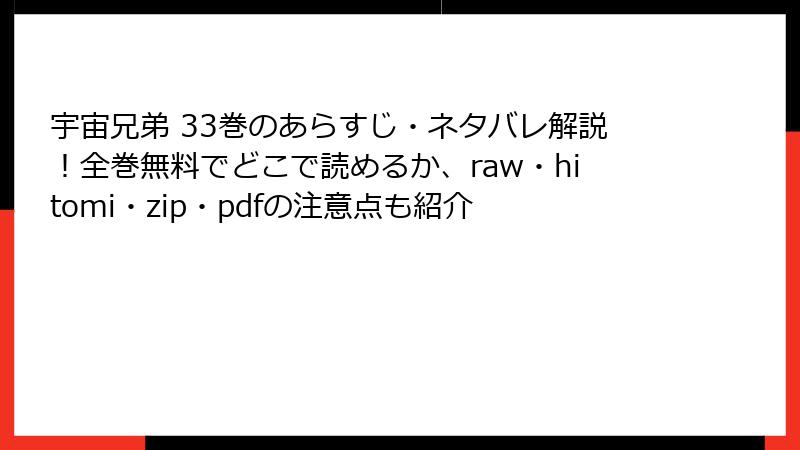 こんにちは、漫画ファンの皆さん! 今日も人気作に没頭したいところですが、ちょっと待ってください。『宇宙兄弟』のような名作を、raw、hitomi、zip、pdf、漫画バンクなどの海賊版サイトで「無料で読める」と誘惑されること、ありませんか? 確かに一見お得に思えますが、実際は法的な罰則からサイバー攻撃、さらには業界全体の崩壊まで、深刻なリスクが潜んでいます。このブログでは、そんな海賊版サイトの危険性を、ネタバレなしで詳しく解説。複数の視点から読み応えをプラスして、皆さんが安全に漫画を楽しめるようお手伝いします。未読のリスクを今すぐチェック!