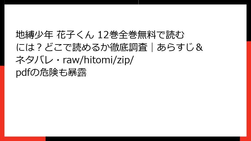 rawや漫画バンクの誘惑は強いですが、法的罰金、ウイルス被害、倫理崩壊のリスクは避けがたい現実。データからも明らかなように、利用者はクリエイターの敵になってしまいます。『地縛少年花子くん』のような名作を支えるためにも、正規購入を習慣に。あなたの一冊が、業界の未来を変えるんです! 皆さんの体験談、コメントでシェアしてくださいね。