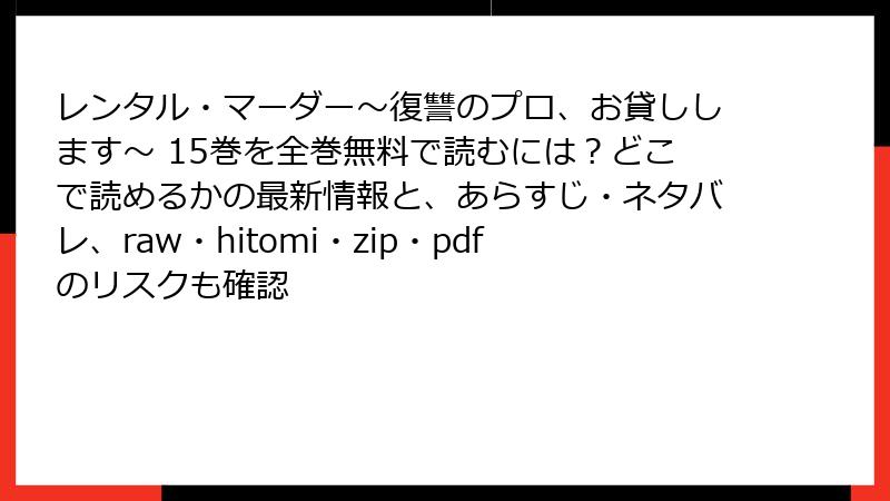 レンタル・マーダー~復讐のプロ、お貸しします~ を raw/hitomi/zip/pdf/漫画バンクで読むリスク:知らずに踏む“復讐の罠”