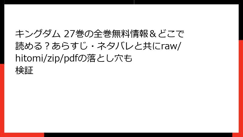 こんにちは、漫画ファンの皆さん! 今日のブログ記事では、誰もが一度は気になってしまう「raw」「hitomi」「zip」「漫画バンク」などの海賊版サイトで『キングダム』のような人気漫画を読むことのリスクを、徹底的に掘り下げてお伝えします。一見、無料で最新話が読めて魅力的ですが、その裏側には深刻な危険が潜んでいます。法的トラブルからデバイス破壊、個人情報の盗難まで――これらを知った上で、正しい選択をしましょう。ネタバレなしでリスクに焦点を当て、複数の角度から解説します。読み終わったら、きっと公式サービスにシフトしたくなるはずです!