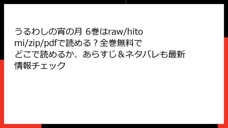 こんにちは、漫画を心から愛する管理人です。今回は、絶対にやってはいけないこと——『うるわしの宵の月』をraw、hitomi、漫画バンク、zip、pdfなどの海賊版サイトで読むリスクを、徹底的に暴きます。