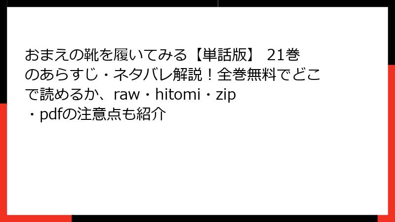 こんにちは、BL漫画を愛するあまり「無料で全巻読破したい!」と誘惑に負けそうになる管理人です。今回は『おまえの靴を履いてみる【単話版】』を例に、raw、hitomi、zip、pdf、漫画バンクなどの海賊版サイトで読むことのリアルなリスクを、体験談・データ・法律面からガッツリ掘り下げます。「バレなきゃいいじゃん」と思っているあなた、5分で人生が変わるかもしれません。ネタバレなしで、読み応え重視でお届け!
