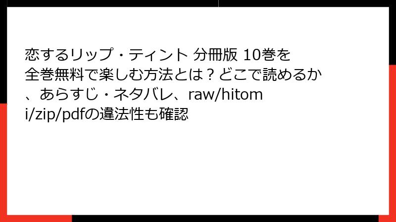 『恋するリップ・ティント 分冊版』電子書籍版配信ガイド:どこで読める? おすすめサービス徹底比較!