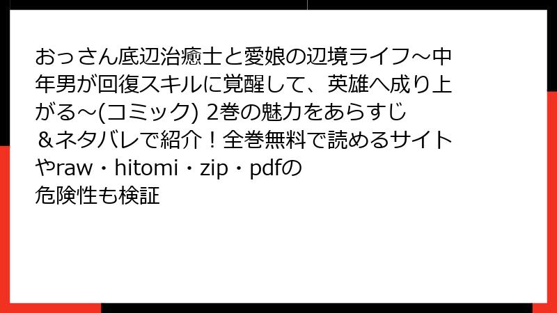 『おっさん底辺治癒士と愛娘の辺境ライフ』をraw・hitomi・漫画バンクで読むのは、法的・セキュリティ的・倫理的にハイリスク・ノーリターン。2巻の感動的な覚醒シーンも、海賊版経由だとウイルス感染のトラウマとセットになります。