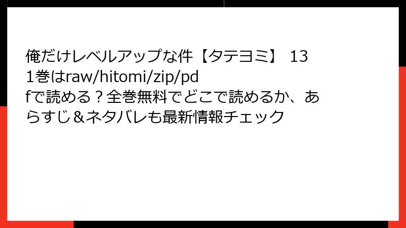 いかがでしたか? 「俺だけレベルアップな件【タテヨミ】」131巻は、戦いの余波を丁寧に描きつつ、新章への橋渡しとして完璧。旬の孤独な闘いが、仲間と軍団の絆に変わる過程が心揺さぶる一冊です。皆さんの感想もコメントでシェアしてね! 次回の更新もお楽しみに♪