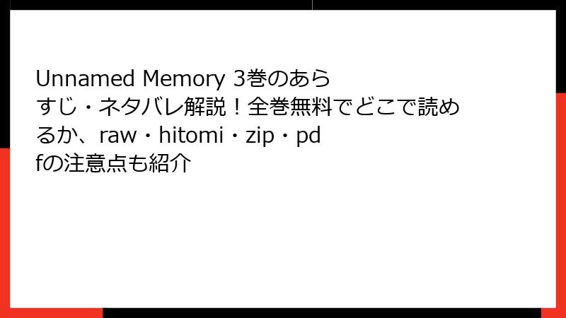 Unnamed Memory 3巻の電子書籍版配信ガイド!御伽噺をどこで?