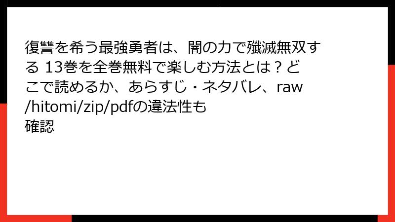 海賊版サイトの闇に潜む罠――『復讐を希う最強勇者は、闇の力で殲滅無双する』のような人気作をraw/hitomi/zip/pdf/漫画バンクで読むリスク徹底解説