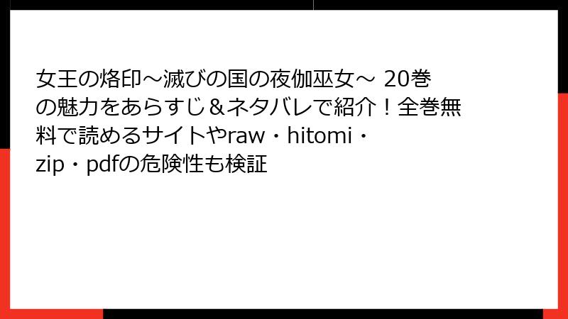 | 女王の烙印~滅びの国の夜伽巫女~ 20巻 | 全巻配信(1巻無料) | 全巻配信(試し読み1話) | 一部配信 | 一部配信 | 一部配信 | 一部配信 | 一部配信 | 一部配信 |