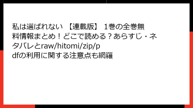 私は選ばれない 【連載版】 1巻の全巻無料情報まとめ!どこで読める?あらすじ・ネタバレとraw/hitomi/zip/pdfの利用に関する注意点も網羅