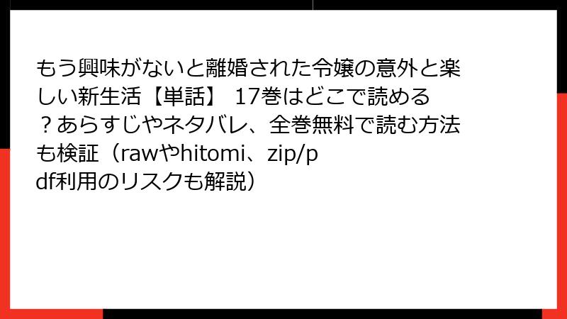 - 『もう興味がないと離婚された令嬢の意外と楽しい新生活【単話】』17巻 読者レビュー・口コミ・評判総まとめ! 2025年最新リアルボイス