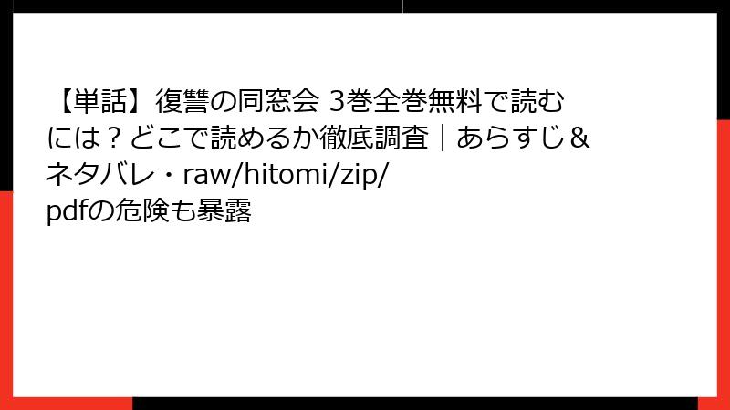 【単話】復讐の同窓会 3巻全巻無料で読むには?どこで読めるか徹底調査|あらすじ&ネタバレ・raw/hitomi/zip/pdfの危険も暴露
