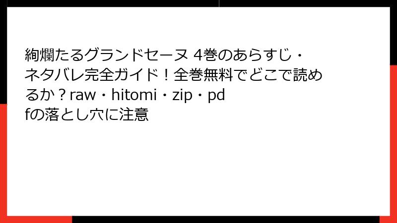こんにちは、海賊版撲滅ブロガーのダンス・リーダーです。今日は大好きな『絢爛たるグランドセーヌ』を、**raw/hitomi/漫画バンク/zip/pdf** などの海賊版サイトで読むことの**本当のリスク**を、容赦なく暴きます。