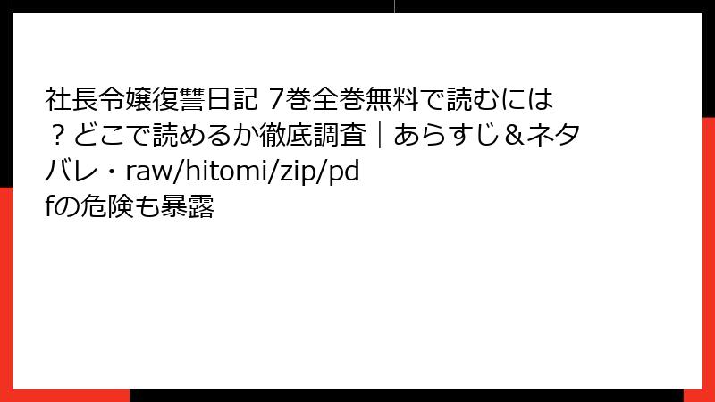 3. 『社長令嬢復讐日記』を海賊版(raw/hitomi/zip/pdf/漫画バンク)で読むリスク完全ガイド:知らずに踏むとヤバい地雷だらけ