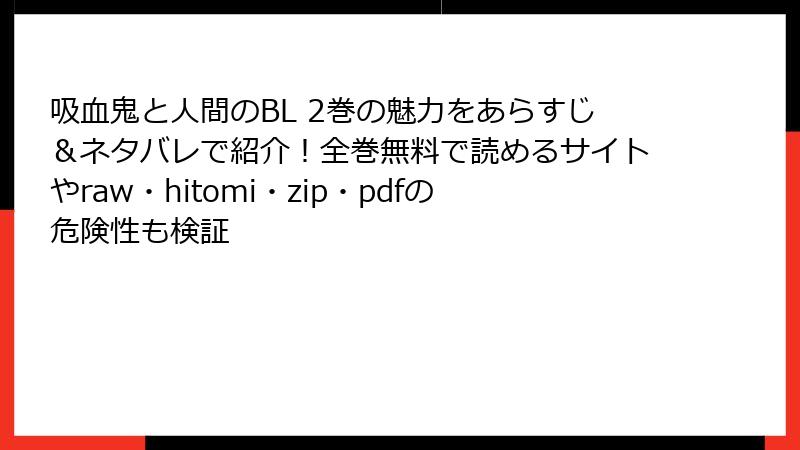 『吸血鬼と人間のBL 2巻』をraw/hitomi/zip/pdf/漫画バンクで読むリスク:知らずに踏むと後悔する5つの罠
