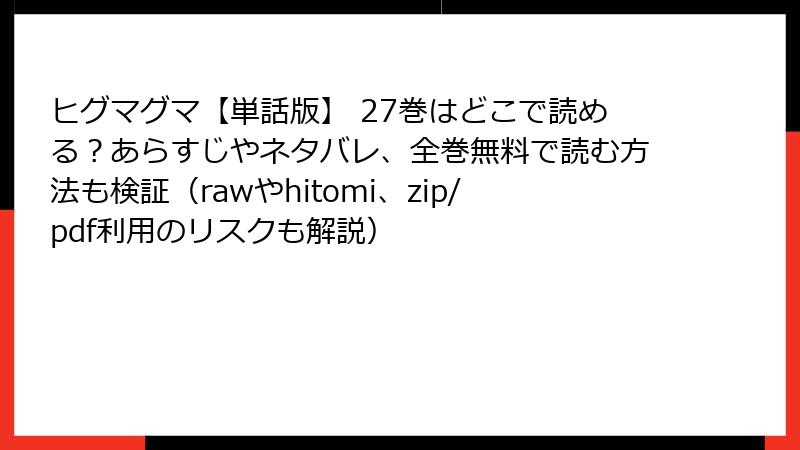 「ヒグマグマ【単話版】」27巻を**raw/hitomi/zip/pdf/漫画バンク**で読むリスクは、**ヒグマの襲撃より100倍ヤバい**。ウイルスでデバイス死亡、警察に捕まる、作者を殺す、精神的トラウマ…全部背負ってまで「無料」に価値はある?