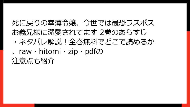 - 『死に戻りの幸薄令嬢、今世では最恐ラスボスお義兄様に溺愛されてます』をraw/hitomi/zip/pdf/漫画バンクで読む? 絶対にやめておくべき“5つの致命的リスク”